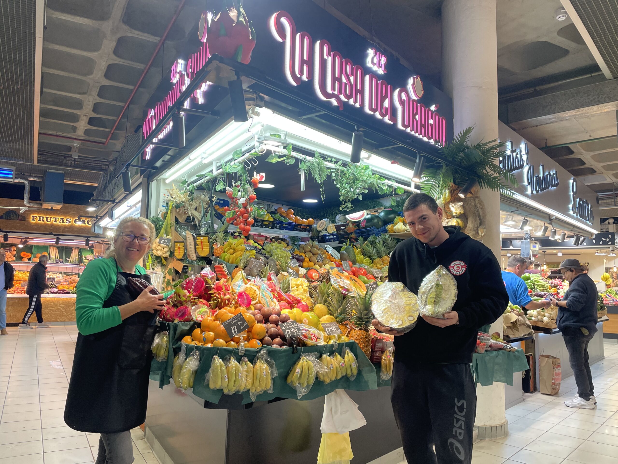 Puesto especializado en frutas exóticas y tropicales. Podrá encontrar una gran variedad: fruta del dragón, maracuyá, granadilla, fruta de la pasión, jackfruit, durian, guanábana, lichi, rambután, mangostán, fruta de serpiente, mamey ukuma y mucho más.